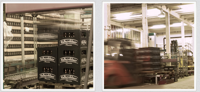 Nach dem Druck bestücken wir Ihre Kästen auf Wunsch mit neuen oder gebrauchten Flaschen und verpacken sie auf Paletten. Anschließend sind Ihre Kästen bereit für den Transport...